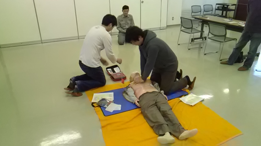 2019.04.22 普通救命講習 本日は地元消防署の協力で、スタッフの普通救命講習を実施しました。 30分ほど救命措置の説明を受けた後、ほとんど実技講習でした。 少人数なのでたっぷり心肺蘇生術のトレーニングをしましたよ。 思ったよりも力が必要で、みんな汗だく息切れ(笑) 手順を教えてもらいましたが、訓練だというのに実際にやってみると頭が真っ白になってしまいます。難しいものですね。 実際にやらなくていいように、みんな日頃の健康管理と事故防止に十分注意して欲しいものです。 健康と安全第一! P1000028